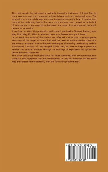 Information on forest fires Timber Section, FAO/ECE Agriculture and Timber Division, Geneva.- Forest fires in countries of northern, eastern and central Europe.- Forest fires in the Mediterranean region.- Forest fires in North America The Petawawa National Forestry Institute, Canadian Forestry Service and the United States Forest Service.- Les critères d'évaluation des risques d'incendie de forêts.- Modelling the development of fire in a forest environment.- Forest fire detection systems.- Forest fire planning: organization and methods of control.- Forest fire prevention and control in the German Democratic Republic.- A computer project for the collection and handling of data in forest fire control.- Recent evolution and prospects for the Mediterranean region.- Forest fire control by means of ground equipment.- Ground equipment in North America Petawawa National Forestry Institute, Canadian Forestry Institute and the United States Forest Service.- Forest fire problems in the Federal Republic of Germany.- Evaluation of technical/economic characteristics of aircraft in fire prevention and suppression.- Development of airborne forest fire fighting equipment in the Federal Republic of Germany.- The use of chemicals in forest fire-fighting.- Medium expansion foam as a forest fire-fighting agent.- The use of explosives in forest fire control.- Measures to reduce forest fire hazards and restoration of damaged areas in Lower Saxony.- Mesures sylvicoles propres à réduire les risques d'incendie dans la zone tempérée.- Controlled burning for stabilizing pine plantations.- Effets de l'incendie sur l'écosystème.- The risk of fire in vegetative cover from the point of view of ecological planning.- Fire suppression training in the United States: an approach tointeragency standardization.- Forest insurance in Sweden.- Public information in forest fire prevention and control.
