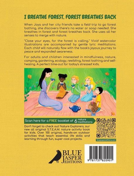 I Breathe Forest. Forest Breathes Back. For fans of the modern classic, The Hugging Tree, comes a companion picture book that takes children on a gentle, unforgettable journey of wonder, joy & peace in nature. It's a perfect time-out for today's stressed kids. Lyric moments and vivid watercolor illustrations show Joya and her city friends on a forest bathing field trip. No water or soap needed! Just feel and be one with nature. For adults and children interested in mindfulness, the natural world, the great outdoors, forest bathing and forest schools. Forest Joy is ideal for:Ages 4-8 Parents, libraries and schools interested in mindfulness, nature, forest bathing and forest schools Parents wanting a simple way to help children self-soothe in nature Fans of the bedtime classic, Goodnight Moon Pair this book with Nature Explorers, a STEAM-oriented nature activity guide for kids, packed with over 100 activities that offer hands-on learning outdoors, including mindfulness meditations.
