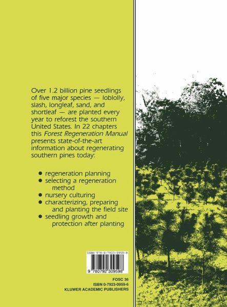 The Forest Regeneration Manual presents state-of-the-art information about current regeneration practices for southern pines in the United States. Over 1.2 billion seedlings of five major species -- loblolly, slash, longleaf, sand, and shortleaf -- are planted each year.