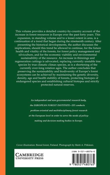This volume provides a detailed country-by-country account of the increase in forest resources in Europe over the past forty years. This expansion, in standing volume and to a lesser extent in area, is a continuation of a trend that began during the nineteenth century. After presenting the historical developments, the author discusses the implications, should this trend be allowed to continue, for the future health and vitality of the forests, for forest policy management and silviculture, and for the economic viability and environmental sustainability of the resource. An increase in thinnings and regeneration cuttings is advocated, replacing current unstable tree species by true climatic climax species, as is a shortening of the currently over-long rotation ages. The author concludes that preserving the sustainability and biodiversity of Europe's forest ecosystems can be achieved by maintaining the genetic diversity, density, age and health stability of forests, protecting biotopes of endangered species and establishing cultural biotopes and strictly protected natural reserves.