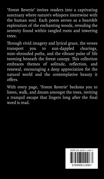 "Forest Reverie" invites readers into a captivating sanctuary where nature's whispers intertwine with the human soul. Each poem serves as a heartfelt exploration of the enchanting woods, revealing the serenity found within tangled roots and towering trees. Through vivid imagery and lyrical grace, the verses transport you to sun-dappled clearings, mist-shrouded paths, and the vibrant pulse of life teeming beneath the forest canopy. This collection embraces themes of solitude, reflection, and renewal, encouraging a deep appreciation for the natural world and the contemplative beauty it offers. With every page, "Forest Reverie" beckons you to listen, walk, and dream amongst the trees, inviting a tranquil escape that lingers long after the final word is read.