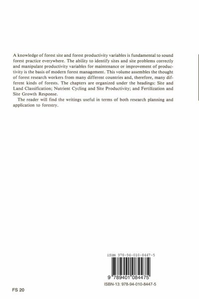 A knowledge of forest site and forest productivity variables is fundamental to sound forest practice everywhere. The ability to identify sites and site problems correctly and manipulate productivity variables for maintenance or improvement of productivity is the basis of modern forest management. Although the basic facts regarding forest site and productivity apply throughout the world, the application of information and the response to manipulation vary greatly and depend on local forest conditions. The September 1981 World Congress of the International Union of Forest Research Organizations (IUFRO) in Kyoto, Japan was the occasion for the special meeting on Forest Site and Productivity sponsored by the IUFRO Site Group Sl.02. This meeting brought together forest site and productivity researchers from across the world to review current thought and the state of site research. Information not ordinarily available in one place was presented at this meeting. As organizer of the session, I decided to attempt to publish the papers in one volume. Arrangements were made with a publisher, Martinus Nijhoff, and also with the authors. The process of publication has taken longer than desirable, but the volume does appear at an opportune time coincident with the 1986 IUFRO World Congress in Yugoslavia. Material contained in this publication will set the stage for Site Group discussions at the 1986 meeting. This volume assembles the thought of forest research workers from many different countries and therefore many different kinds of forests.