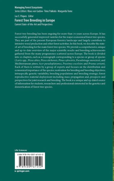 Forest tree breeding has been ongoing for more than 70 years across Europe. It has successfully generated improved varieties for the major economical forest tree species. They are part of the present European forestry landscape and largely contribute to intensive wood production and other forest activities. In this book, we describe the state-of-art of breeding for the main forest tree species. We provide a comprehensive, unique and up-to-date overview of the major scientific results and breeding achievements gathered from the many programmes scattered across Europe. The book is divided into 10 chapters, each as a monograph corresponding to a species or group of species Abies spp., (Larix spp., Picea abies, Picea sitchensis, Pinus sylvestris, Pseudotsuga menziesii, and Mediterranean pines; Acer pseudoplatanus, Fraxinus excelsior, and Prunus avium). Each of them is written by a group of experts and focuses on the distribution and economical importance of the species; motivation for breeding and breeding objectives; intraspecific genetic variability, breeding populations and breeding strategy; forest reproductive material deployment including mass-propagation and, prospects and perspectives for joint research and breeding. The book is a unique and up-dated source of information for students, researchers and professionals interested in the genetics and domestication of forest tree species.