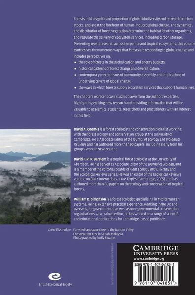 Forests hold a significant proportion of global biodiversity and terrestrial carbon stocks and are at the forefront of human-induced global change. The dynamics and distribution of forest vegetation determines the habitat for other organisms, and regulates the delivery of ecosystem services, including carbon storage. Presenting recent research across temperate and tropical ecosystems, this volume synthesises the numerous ways that forests are responding to global change and includes perspectives on: the role of forests in the global carbon and energy budgets; historical patterns of forest change and diversification; contemporary mechanisms of community assembly and implications of underlying drivers of global change; and the ways in which forests supply ecosystem services that support human lives. The chapters represent case studies drawn from the authors' expertise, highlighting exciting new research and providing information that will be valuable to academics, students, researchers and practitioners with an interest in this field.