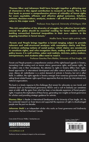 Forests and People is a timely response to the challenges that remain for advocates as new trends and initiatives, such as market-based governance, REDD, and a rush to biofuels, can sometimes seem at odds with the gains from what has been a two decade expansion of forest peoples' rights. It explores the implications of these forces, and generates new insights on forest governance for scholars and provides strategic guidance for activists.