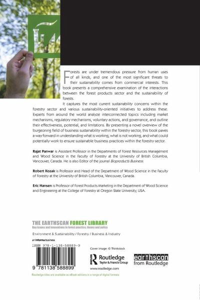 Forests are under tremendous pressure from human uses of all kinds, and one of the most significant threats to their sustainability comes from commercial interests. This book presents a comprehensive examination of the interactions between the forest products sector and the sustainability of forests. It captures the most current sustainability concerns within the forestry sector and various sustainability-oriented initiatives to address these. Experts from around the world analyze interconnected topics including market mechanisms, regulatory mechanisms, voluntary actions, and governance, and outline their effectiveness, potential, and limitations. By presenting a novel overview of the burgeoning field of business sustainability within the forestry sector, this book paves a way forward in understanding what is working, what is not working, and what could potentially work to ensure sustainable business practices within the forestry sector,
