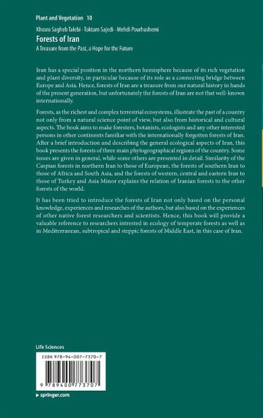 The work describes the general ecological aspects of Iran as well as West and Central Asia in the introduction. The book includes three chapters, each describing the climate, geology and soil characteristics, vegetation and forest types, site demands of the main tree species and the ecogram of them, management and socio-economic issues of three different phytogeographical regions, mainly the Hyrcanian, Irano-Turanian, and Saharo-Sindian. Each chapter contains a table for introducing the English and Botanical names of the plant species mentioned in the chapter. The information presented in this book is based on personal experiences and results of research projects of the authors, as well as experiences of other forest scientists in Iran. The references are given at the end of each chapter separately. The book contains 10 tables, 37 black and white and 55 color pictures.