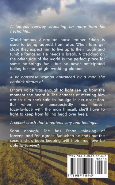 A famous cowboy searching for more from his hectic life... World-famous Australian horse trainer Ethan is used to being adored from afar. When fans get close they expect him to live up to their rough and tumble fantasies. He needs a break. A wedding on the other side of the world is the perfect place for some no-strings fun... but he never anticipated falling for the uptight wedding planner. A no-nonsense woman entranced by a man she couldn't dream of... Ethan's voice was enough to light Fee up from the moment she heard it. The chances of meeting him are so slim she's safe to indulge in her obsession. But when she unexpectedly finds herself face-to-face with the man himself, she'll have to fight to keep from falling head over heels. A secret crush that threatens very real feelings... Soon enough, Fee has Ethan thinking of forever-and Fee agrees. But when he finds out the secrets she's been keeping will their true love be able to survive?