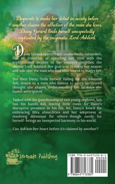 Desperate to make her debut in society before another claims the affection of the man she loves, Daisy Gerard finds herself unexpectedly captivated by the enigmatic Lord Ashford. Daisy Gerard, spirited and unabashedly outspoken, had no intention of spending her time with the sophisticated mother of her country neighbor, the elusive Lord Ashford. Her goal was to enjoy her season and win over the man who had once vowed to marry her. But then Daisy finds herself falling for the irksome Ash, drawn to a man who listens to every unfiltered thought she shares, understanding her in ways she hadn't anticipated. Tasked with the guardianship of two young orphans, Ash has his hands full, leaving little room for Daisy's disruptive presence in his life. Yet, Daisy's knack for embracing life's absurdities and her adeptness at resolving dilemmas for others-though rarely for herself-brings an unexpected harmony to his world. Can Ash win her heart before it's claimed by another?