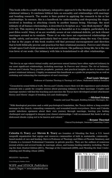 This book reflects a multi disciplinary, integrative approach to the theology and practice of relational intimacy. It combines biblical data on sexuality and relationships with marriage and bonding research. The reader is then guided in applying the research to his or her relationships. In essence, this is a handbook for understanding and deepening the stages involved in bonding or attaching closely to another human being. Marriage, the most intimate of all human relationships, is described in Scripture as a "one-flesh mystery" (Eph 5:31-32). This mystery of human bonding is as beautiful as it is complex, particularly in a post-Eden world. Many of us are woefully aware of our relational deficits, yet lack vibrant marriages around us to emulate. Those of us who have not experienced relationships of health, safety, and security particularly find we need roadmaps along the way. Our desire is that in the pages of this book readers will find personal encouragement and direction that is both biblically precise and practical for their relational journeys. Our intimacy model is built upon God's bold promises to heal and redeem. His pathways bring life; he is the one true lover of our souls. Our intimacy with him is foundational to all other relationships.