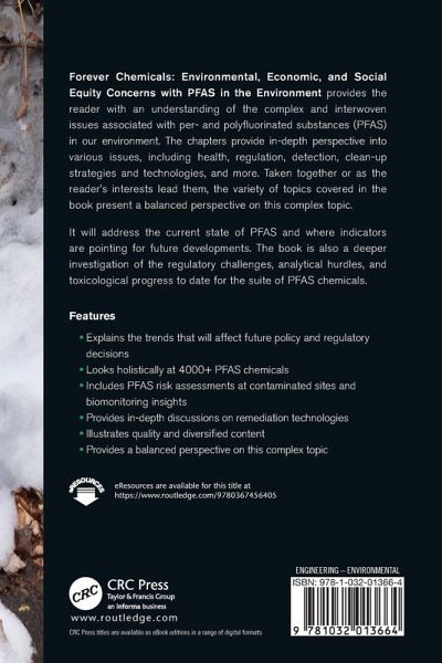 Forever Chemicals: Environmental, Economic, and Social Equity Concerns with PFAS in the Environment provides the reader with an understanding of the complex and interwoven issues associated with per- and polyfluorinated substances (PFAS) in our environment. The chapters provide in-depth perspective into various issues, including health, regulation, detection, clean-up strategies and technologies, and more. Taken together or as the reader's interests lead them, the variety of topics covered in the book present a balanced perspective on this complex topic.
