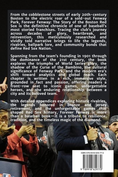 From the cobblestone streets of early 20th-century Boston to the electric roar of a sold-out Fenway Park, Forever Fenway: The Story of the Boston Red Sox is the definitive chronicle of one of baseball's most storied franchises. Tracing the club's journey across decades of glory, heartbreak, and reinvention, this meticulously researched and vividly told narrative brings to life the legends, rivalries, ballpark lore, and community bonds that define Red Sox Nation. Spanning from the team's founding in 1901 through the dominance of the 21st century, the book explores the triumphs of World Series glory, the shadow of the Curse of the Bambino, the cultural significance of Fenway Park, and the modern era's shift toward analytics and global reach. Each chapter is written in a rich, immersive style, grounded in fact and passion, offering readers a front-row seat to iconic games, unforgettable heroes, and the enduring relationship between a city and its beloved team. With detailed appendices exploring historic rivalries, the legends honored in bronze and jersey retirement, and the unforgettable games that shaped Red Sox history, Forever Fenway is more than a baseball book-it is a tribute to resilience, tradition, and the timeless magic of the diamond.