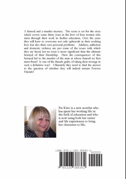 A funeral and a murder mystery. The scene is set for the story which covers some thirty years in the lives of four women who meet through their work in further education. Over the years they have to overcome not only upheavals in their working lives but also their own personal problems. Adultery, addiction and domestic violence are just some of the issues with which they are faced but no issue is more significant than the ultimate betrayal of their friendship. Have the consequences of this betrayal led to the murder of the man at whose funeral we first meet them? Is one of the four friends guilty of taking such a definitive revenge? Ultimately, they will need to answer the question of whether they will indeed remain Forever Friends?