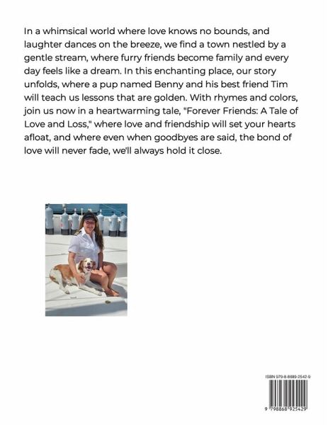 In a whimsical world where love knows no bounds, and laughter dances on the breeze, we find a town nestled by a gentle stream, where furry friends become family and every day feels like a dream. In this enchanting place, our story unfolds, where a pup named Benny and his best friend Tim will teach us lessons that are golden. With rhymes and colors, join us now in a heartwarming tale, "Forever Friends: A Tale of Love and Loss," where love and friendship will set your hearts afloat, and where even when goodbyes are said, the bond of love will never fade, we'll always hold it close.