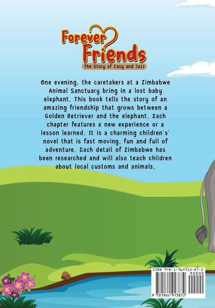Forever Friends tells the story of an orphaned elephant who is taken in by an animal sanctuary. Its very first friend is a Golden Retriever named Casy who gives the elephant, Jazz, a sense of comfort and belonging. This lovely children's' novel tells the story of their friendship and adventures as they grow and interact with other animals and human friends. It is a story of everlasting love and friendship.