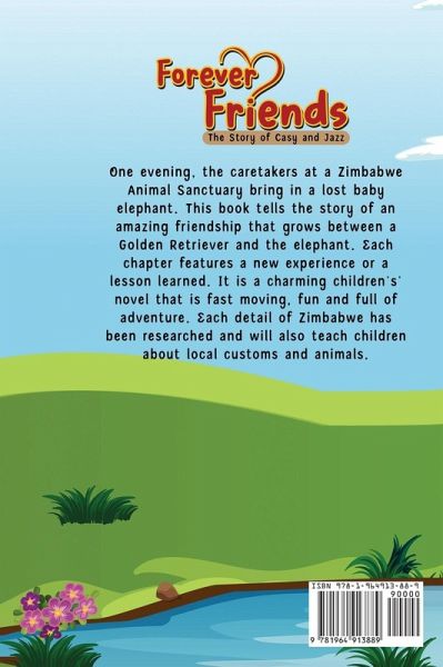Forever Friends tells the story of an orphaned elephant who is taken in by an animal sanctuary. Its very first friend is a Golden Retriever named Casy who gives the elephant, Jazz, a sense of comfort and belonging. This lovely children's' novel tells the story of their friendship and adventures as they grow and interact with other animals and human friends. It is a story of everlasting love and friendship.