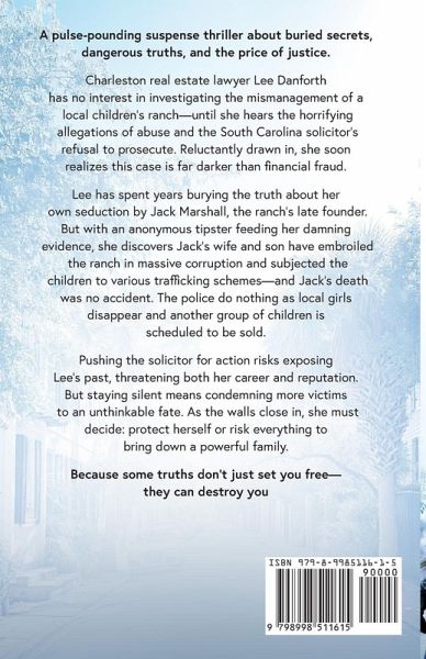 A pulse-pounding suspense thriller about buried secrets, dangerous truths, and the price of justice. Charleston real estate lawyer Lee Danforth has no interest in investigating the mismanagement of a local children's ranch-until she hears the horrifying allegations of abuse and the South Carolina solicitor's refusal to prosecute. Reluctantly drawn in, she soon realizes this case is far darker than financial fraud. Lee has spent years burying the truth about her own seduction by Jack Marshall, the ranch's late founder. But with an anonymous tipster feeding her damning evidence, she discovers Jack's wife and son have embroiled the ranch in massive corruption and subjected the children to various trafficking schemes-and Jack's death was no accident. The police do nothing as local girls disappear and another group of children is scheduled to be sold. Pushing the solicitor for action risks exposing Lee's past, threatening both her career and reputation. But staying silent means condemning more victims to an unthinkable fate. As the walls close in, she must decide: protect herself or risk everything to bring down a powerful family. Because some truths don't just set you free-they can destroy you.