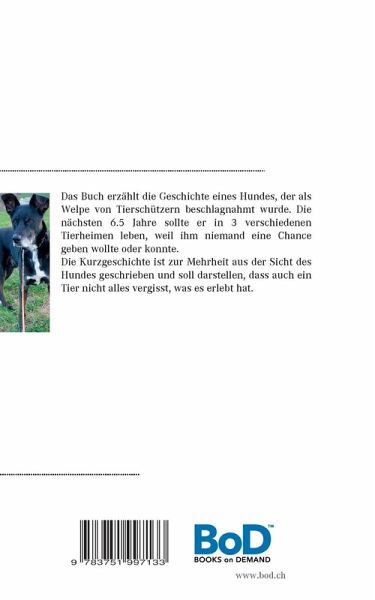 Das Buch erzählt die Geschichte eines Hundes, der als Welpe von Tierschützern beschlagnahmt wurde. Die nächsten 6.5 Jahre sollte er in 3 verschiedenen Tierheimen leben, weil ihm niemand eine Chance geben wollte oder konnte.Die Kurzgeschichte ist zur Mehrheit aus der Sicht des Hundes geschrieben und soll darstellen, dass auch ein Tier nicht alles vergisst was es erlebt hat.