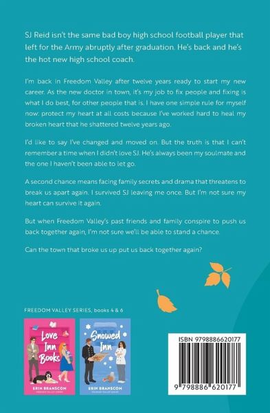 SJ Reid isn't the same bad-boy high school football player who abruptly left for the Army after graduation. He's back, and he's the hot new high school coach. I'm back in Freedom Valley after twelve years, ready to start my new career. As the new doctor in town, it's my job to fix people, and fixing is what I do best, for other people that is. I have one simple rule: protect my heart at all costs. I've worked hard to heal the broken heart he shattered twelve years ago. I want to say I've moved on, but the truth is, I can't remember a time when I didn't love SJ. He's always been my soulmate and the one I haven't been able to let go. A second chance means facing family secrets and drama that threatens to break us apart again. I survived SJ leaving me once. I'm not sure my heart can survive it again. So we don't stand a chance when Freedom Valley's past friends and family conspire to push us back together again. Can the town that broke us up put us back together again? *Forever Inn Love is a small town, second chance, first love romance. Forever Inn Love is a complete standalone, but if you prefer to read them in order, start with Falling Inn Love as the characters and families are interconnected.*