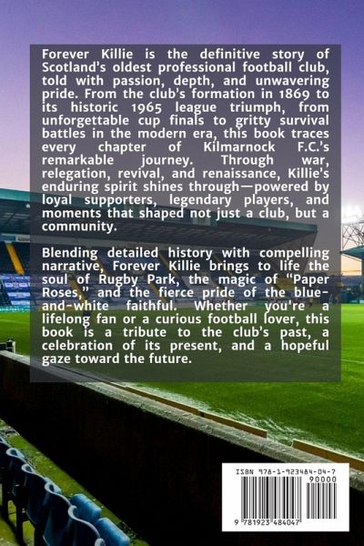 Forever Killie is the definitive story of Scotland's oldest professional football club, told with passion, depth, and unwavering pride. From the club's formation in 1869 to its historic 1965 league triumph, from unforgettable cup finals to gritty survival battles in the modern era, this book traces every chapter of Kilmarnock F.C.'s remarkable journey. Through war, relegation, revival, and renaissance, Killie's enduring spirit shines through-powered by loyal supporters, legendary players, and moments that shaped not just a club, but a community. Blending detailed history with compelling narrative, Forever Killie brings to life the soul of Rugby Park, the magic of "Paper Roses," and the fierce pride of the blue-and-white faithful. Whether you're a lifelong fan or a curious football lover, this book is a tribute to the club's past, a celebration of its present, and a hopeful gaze toward the future.