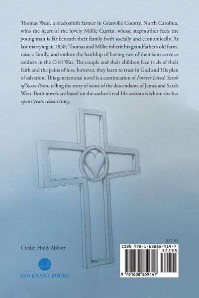 Thomas West, a blacksmith farmer in Granville County, North Carolina, wins the heart of the lovely Millie Currin, whose stepmother feels the young man is far beneath their family both socially and economically. At last marrying in 1838, Thomas and Millie inherit his grandfather's old farm, raise a family, and endure the hardship of having two of their sons serve as soldiers in the Civil War. The couple and their children face trials of their faith and the pains of loss; however, they learn to trust in God and His plan of salvation. This generational novel is a continuation of Forever Loved: Sarah of Swan Point, telling the story of some of the descendants of James and Sarah West. Both novels are based on the author's real-life ancestors whom she has spent years researching.