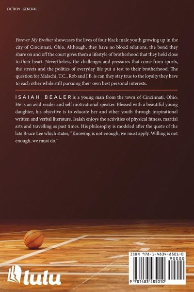 Forever My Brother showcases the lives of four black male youth growing up in the city of Cincinnati, Ohio. Although, they have no blood relations, the bond they share on and off the court gives them a lifestyle of brotherhood that they hold close to their heart. Nevertheless, the challenges and pressures that come from sports, the streets and the politics of everyday life put a test to their brotherhood. The question for Malachi, T.C., Rob and J.B. is can they stay true to the loyalty they have to each other while still pursuing their own best personal interests.