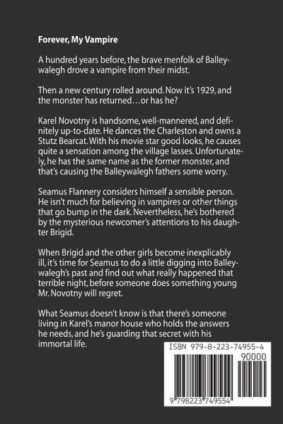 AN AMUSING AND IMAGINATIVE ROMANCE A hundred years before, the brave menfolk of Balleywalegh drove a vampire from their midst. Then a new century rolled around and now it's 1929, and the monster has returned…or has he? Karel Novotny is handsome, well-mannered, and definitely up-to-date. He dances the Charleston and owns a Stutz Bearcat. With his movie star good looks, he causes quite a sensation among the village lasses. Unfortunately, he has the same name as the former monster and that's causing the Balleywalegh fathers some worry. Seamus Flannery considers himself a sensible person. He isn't much for believing in vampires or other things that go bump in the dark. Nevertheless, he's bothered by the mysterious newcomer's attentions to his daughter Brigid. When Brigid and the other girls become inexplicably ill, it's time for Seamus to do a little digging into Balleywalegh's past and find out what really happened that terrible night, before someone does something young Mr. Novotny will regret. What Seamus doesn't know is that there's someone living in Karel's manor house who holds the answers he needs, and he's guarding that secret with his immortal life.