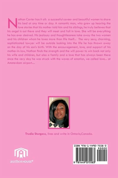 Nathan Carter has it all: a successful career and beautiful women to share his bed at any time or day. A romantic man, who grew up hearing the love stories that his mother told him and his siblings, he truly believes that his angel is out there and they will meet and fall in love. She will be everything he has ever desired. His jealousy and thoughtlessness take away the two women and his children whom he loves more than life itself... The very sexy, charming, sophisticated lawyer will be outside looking into the life he has thrown away on the day of his son's birth. With the encouragement, love, and support of his mother-in-law, Nathan finds the strength and the will power to win back not only his wife and children, but also a family and a love that has always been there since the very day he was struck with the waves of emotion, we called love... at Amsterdam airport....