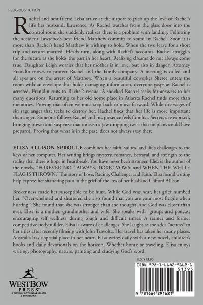 Rachel and best friend Leisa arrive at the airport to pick up the love of Rachel's life her husband, Lawrence. As Rachel watches from the glass door into the control room she suddenly realizes there is a problem with landing. Following the accident Lawrence's best friend Matthew commits to stand by Rachel. Soon it is more than Rachel's hand Matthew is wishing to hold. When the two leave for a short trip and return married. Heads turn, along with Rachel's accounts. Rachel struggles for the future as she holds the past in her heart. Realizing dreams do not always come true. Daughter Leigh worries that her mother is in love, but also in danger. Attorney Franklin moves to protect Rachel and the family company. A meeting is called and all eyes are on the arrest of Matthew. When a beautiful coworker Sheree enters the room with an envelope that holds damaging information, everyone gasps as Rachel is arrested. Franklin runs to Rachel's rescue. A shocked Rachel seeks for answers to her many questions. Returning to her old home place in Atlanta Rachel finds more than memories. Proving that often we must step back to move forward. While the wages of sin rage anger that seeks to destroy her, Rachel finds that her life is more important than anger. Someone follows Rachel and his presence feels familiar. Secrets are exposed, bringing power and suspense that unleash a jaw dropping twist that no plans could have prepared. Proving that what is in the past, does not always stay there.