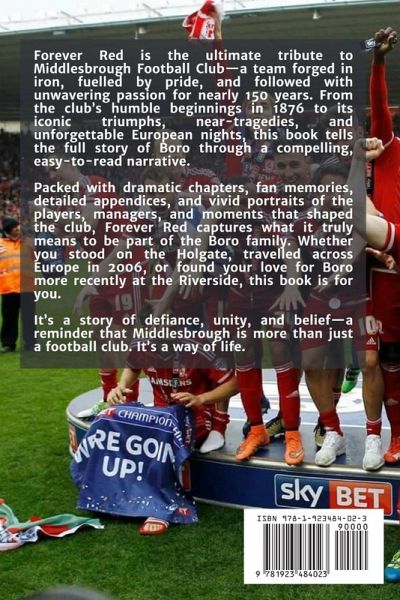 Forever Red is the ultimate tribute to Middlesbrough Football Club-a team forged in iron, fuelled by pride, and followed with unwavering passion for nearly 150 years. From the club's humble beginnings in 1876 to its iconic triumphs, near-tragedies, and unforgettable European nights, this book tells the full story of Boro through a compelling, easy-to-read narrative. Packed with dramatic chapters, fan memories, detailed appendices, and vivid portraits of the players, managers, and moments that shaped the club, Forever Red captures what it truly means to be part of the Boro family. Whether you stood on the Holgate, travelled across Europe in 2006, or found your love for Boro more recently at the Riverside, this book is for you. It's a story of defiance, unity, and belief-a reminder that Middlesbrough is more than just a football club. It's a way of life.