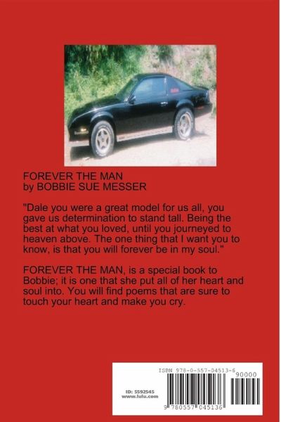 "Dale you were a great model for us all, you gave us the determination to stand tall. Being the best at what you loved, until you journeyed to heaven above.The one thing that I want you to know, Is that you will forever be in my soul." FOREVER THE MAN, is a special book to Bobbie; it is one she put all of her heart and soul into. You will find poems that are sure to touch your heart and make you cry.