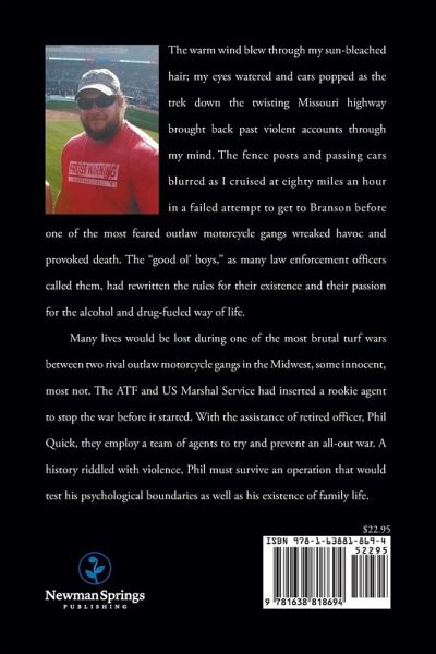 The warm wind blew through my sun-bleached hair; my eyes watered and ears popped as the trek down the twisting Missouri highway brought back past violent accounts through my mind. The fence posts and passing cars blurred as I cruised at eighty miles an hour in a failed attempt to get to Branson before one of the most feared outlaw motorcycle gangs wreaked havoc and provoked death. The "good ol' boys," as many law enforcement officers called them, had rewritten the rules for their existence and their passion for the alcohol and drug-fueled way of life. Many lives would be lost during one of the most brutal turf wars between two rival outlaw motorcycle gangs in the Midwest, some innocent, most not. The ATF and US Marshal Service had inserted a rookie agent to stop the war before it started. With the assistance of retired officer, Phil Quick, they employ a team of agents to try and prevent an all-out war. A history riddled with violence, Phil must survive an operation that would test his psychological boundaries as well as his existence of family life.