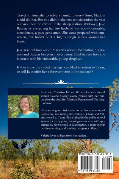 Travel to Australia to solve a family mystery? Sure, Marlow could do that. But she didn't take into consideration the vast outback, nor the owner of the sheep station. Widower, Jake Barclay, is everything her late husband was not-honorable, considerate, a pure gentleman. She came prepared with sunscreen, but hadn't built a high enough screen around her heart. Jake was dubious about Marlow's reason for visiting his station and thwarts her plan at every turn. Until he sees how she interacts with his vulnerable, young daughter. If they solve the coded message, can Marlow return to Texas, or will Jake offer her a forever home in the outback?