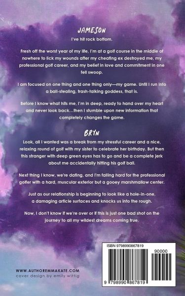 If you like spicy romances, hilarious banter, and HEAs, then you'll love Jameson and Bryn in this professional golf romance where he falls first and harder. Jameson: I've hit rock bottom. Fresh off the worst year of my life, I'm at a golf course in the middle of nowhere to lick my wounds after my cheating ex destroyed me, my professional golf career, and my belief in love and commitment in one fell swoop. I am focused on one thing and one thing only-my game. Until I run into a ball-stealing, trash-talking goddess, that is. Before I know what hits me, I'm in deep, ready to hand over my heart and never look back...then I stumble upon new information that completely changes the game. Bryn: Look, all I wanted was a break from my stressful career and a nice, relaxing round of golf with my sister to celebrate her birthday. But then this stranger with deep green eyes has to go and be a complete jerk about me accidentally hitting his golf ball. Next thing I know, we're dating, and I'm falling hard for the professional golfer with a hard, muscular exterior but a gooey marshmallow center. Just as our relationship is beginning to look like a hole-in-one, a damaging article surfaces and knocks us into the rough. Now, I don't know if we're over or if this is just one bad shot on the journey to all my wildest dreams coming true. Debut author Emma Kate launches a hilarious, small town romance series with a novel about a professional athlete falling for a fiery workaholic. It can be read as a complete standalone.