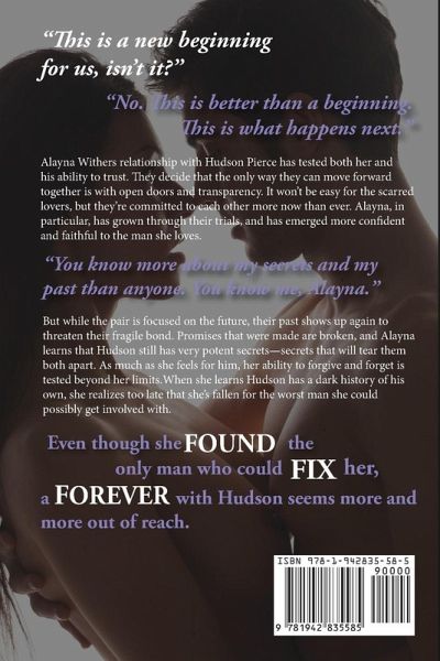 The New York Times Bestselling Third Book in the Epic Fixed Trilogy Alayna Withers relationship with Hudson Pierce has tested both her and his ability to trust. They decide that the only way they can move forward together is with open doors and transparency. It won’t be easy for the scarred lovers, but they’re committed to each other more now than ever. Alayna, in particular, has grown through their trials, and has emerged more confident and faithful to the man she loves. But while the pair is focused on the future, their past shows up again to threaten their fragile bond. Promises that were made are broken, and Alayna learns that Hudson still has very potent secrets—secrets that will tear them both apart. As much as she feels for him, her ability to forgive and forget is tested beyond her limits. Even though she found the only man who could fix her, a forever with Hudson seems more and more out of reach.