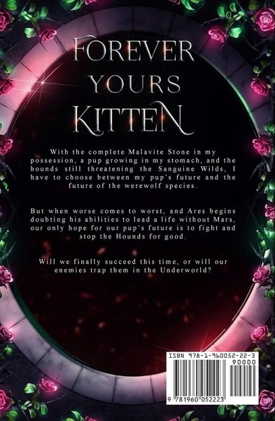 With the complete Malavite Stone in my possession, a pup growing in my stomach, and the hounds still threatening the Sanguine Wilds, I have to choose between my pup's future and the future of the werewolf species. But when worse comes to worst, and Ares begins doubting his abilities to lead a life without Mars, our only hope for our pup's future is to fight and stop the Hounds for good. Will we finally succeed this time, or will our enemies trap them in the Underworld? Find out when you read Forever Yours Kitten, a steamy paranormal romance that fans of Suzanne Wright and K.F. Breene will devour!