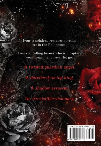 Four standalone romance novellas set in the Philippines. Four compelling heroes who will capture your heart...and never let go. A twisted guardian angel.A daredevil racing king.A shadow assassin.An irresistible visionary. ANGEL (Aug 2023) He was her twisted guardian angel-someone she only ever saw in the shadows. In the face of a deadly turf war, could she make him stay in the light...or will he disappear into the darkness forever? HEART CHAINED (Sep 2023) They have the perfect friendship-but their hearts refuse to let each other go. After a night of revelations, will they be brave enough to admit the true ties that bound them...or will they forever be doomed to run in chains? SHADOW & LIGHT (Sep 2023) She was like the sun, on a day without clouds-he was only a shadow, steeped in a legacy of secrets. With time running out, could he tell her the truth about his heritage...or will he remain hidden in his blood-drenched past? THE LAST DIVIDE (Nov 2023) Rivals, competitors, training partners-never friends. Brought together after 15 years by a passion that could put a raging storm to shame, will they finally reach out for a love long since hidden...or will the walls of the past keep them apart? Suggested for mature readers 18+ Also available in ebook, paperback, and hardback editions.
