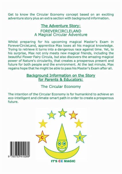 Get to know the eco-intelligent and climate-smart Circular Economy concept in this children's book based on an exciting, magical adventure story. Plus, the sheet music of the novel's title song and an extra section with background information for parents and educators.THE MAGICAL ADVENTURE STORY: While preparing for his upcoming magical Master's Exam, apprentice Max loses all his magical knowledge. Trying to get it back turns into a most dangerous race against time. Yet, to his surprise, Max not only meets new magical friends -including the beautiful Flower Fairy Circula - but he also discovers the amazing power of Nature's circular premise, that can create positive effects for people and the environment. At the last minute, Max regains his hope that he might be able to pass his Master's Exam after all.IN PART 2 OF THE BOOK for parents and educators, learn about the Circular Economy that aims at getting all parties of human society on an eco-intelligent and climate-smart path which creates a prosperous future for all.