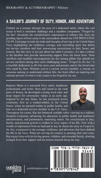 Forged by the Sea is more than just a naval memoir; it is a story of personal transformation. Through the rigors of military duty, Mutai shares how the Navy shaped his character, instilled a deep sense of honor, and taught him invaluable lessons about leadership, resilience, and sacrifice. The book highlights his internal struggles and triumphs while navigating the challenges of balancing family life, the demands of service, and the pursuit of personal growth. This memoir offers readers a rare glimpse into the realities of military life, with vivid descriptions of shipboard camaraderie, high-stakes operations, and the trials of deployment. Mutai's reflections on duty, adventure, and honor offer readers inspiration and insight into what it means to be 'forged by the sea.' It is a story for anyone who has faced challenges and sought the strength to rise above them. Perfect for military enthusiasts, adventure seekers, and anyone interested in personal stories of perseverance, Forged by the Sea blends action, introspection, and the values of duty and honor in a powerful narrative. Mutai's journey resonates with universal themes of courage, family, and finding one's place in the world. Whether you are a veteran of military service, a family member of someone in uniform, or simply a lover of true-life adventure stories, Forged by the Sea will inspire, entertain, and leave you with a newfound respect for the men and women who serve at sea.