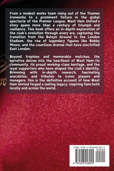 From a modest works team rising out of the Thames Ironworks to a prominent fixture in the global spectacle of the Premier League, West Ham United's story spans more than a century of triumph and resilience. This book offers an in-depth exploration of the club's evolution through every era, capturing the transition from the Boleyn Ground to the London Stadium, the rise of legendary figures like Bobby Moore, and the countless dramas that have electrified East London. Beyond trophies and memorable matches, the narrative delves into the heartbeat of West Ham-its community, its proud working-class heritage, and the loyal supporters who have shaped the club's identity. Brimming with in-depth research, fascinating anecdotes, and tributes to iconic players and managers, this is the definitive account of how West Ham United forged a lasting legacy, inspiring fans both locally and across the world.