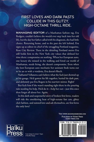 First loves, dark pasts and fast cars collide in this high-octane thrill ride Managing editor of a Manhattan fashion rag, Eva Rodgers, couldn't believe she would ever step back into her old life but the day her father called with his diagnosis, she had little choice. Returning home, and to the past she left behind, Eva signs up as editor-in-chief of the struggling Portland magazine, Rose City Review. There in the drizzling Portland metro Eva still holds firm to the New York city values that defined her time there: compromise on nothing. When her European auto, and one luxury she missed in the walking and hired car world of Manhattan, needs fixing, she doesn't compromise. Even when the best European auto mechanic her assistant finds turns out to be an ex with a vendetta, Eva doesn't flinch. Nathaniel Vellanova can't believe what the fuck just showed up at his garage. He'd gotten his life together, buried his dark past and definitely put Eva Rogers in his rearview mirror. Right? But fuck him if she wasn't standing right there in the pouring rain needing his help. He'd do it - help her out - just this once then forget all about her. Again. In this dark and suspenseful story of broken first loves, readers will ride the smoldering heat of high-octane fast cars, glitzy club fashion and tainted love and ask themselves, are first loves the only love?