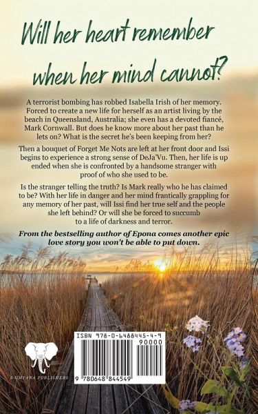 Will her heart remember when her mind cannot? Isabella Irish has no memory before the day a terrorist bombing left her scarred and damaged.Issi, having created a new life with a devoted fiancé, still grapples with the hollow darkness of her missing past.Then a bouquet of Forget Me Nots are left at her front door and Issi begins to experience a strong sense of DeJa'Vu. Is the stranger telling the truth? Is her fiancé really who he has claimed to be?Will Issi find her lost past and true love? Or will she be forced to succumb to a life of darkness and terror?From the bestselling author of Epona comes another epic love story you won't be able to put down.