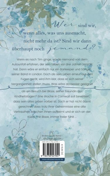 Wer sind wir, wenn alles, was uns ausmacht, nicht mehr da ist? Sind wir dann überhaupt noch jemand?Wenn es nach Tim ginge, würde niemand von dem Autounfall erfahren, der sein Leben vor drei Jahren zerstört hat. Dann wäre er einfach nur ein Barkeeper und Sänger seiner Band in London. Doch als sein Leben erneut aus den Fugen gerät, wird ihm klar, dass er sich seiner Vergangenheit stellen muss. Was wäre da besser geeignet als ein Besuch bei Blaze, seiner Freundin aus Kindheitstagen? Eine Woche in Cornwall soll beweisen, dass sein altes Leben vorbei ist. Doch er hat nicht damit gerechnet, dass trotz ihrer Geheimnisse eine alte Vertrautheit zwischen ihnen aufkeimt und er sich an der Küste, mit Blaze, immer freier fühlt ...