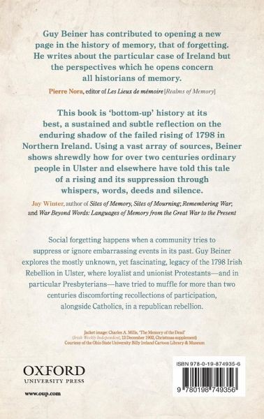 * Figures * Maps * Abbreviations * Epigraphs * Preface: Forgetful Remembrance * Introduction: Sites of Oblivion * Vernacular Historiography * Social Forgetting * The Turn-Out * Part I: Pre-Forgetting: Before 1798 * 1: Recycling Memory * 2: Initiating Counter-Memory * 3: Silencing * 4: Anticipating Forgetting * Part II: Amnesty and Amnesia: The Aftermath of 1798 * 5: Wilful Forgetting * 6: Unforgivingness * 7: Exiling Memory * 8: Impenitence * 9: The Chimera of Oblivion * Part III: The Generation of Forgetting: The First Half of the Nineteenth Century * 10: Uninscribed Epitaphs * 11: Wilful Muteness * 12: Versified Recall * 13: Fictionalized Memory * 14: Hesitations in Coming Out * 15: Collecting Recollections * 16: Postmemory Anxieties * Part IV: Regenerated Forgetting: The Second Half of the Nineteenth Century * 17: Continued Disremembrance * 18: Excavating Memory * 19: Countering Neglect * 20: Imagined Reminiscence * 21: Cultural Memory and Social Forgetting * 22: Revivalism and Re-Collecting * Part V: Decommemorating: The Turn of the Century * 23: Infighting * 24: Iconoclasm * 25: Rowdyism * 26: Recasting and Performing * 27: Rewriting and Staging * 28: Historical Disregard * 29: Re-Commemorating * Part VI: Restored Forgetting: The Short Twentieth Century * 30: Partitioned Memory * 31: Breaking Silence * 32: Unperceived Remembrance * 33: Troubled Forgetting * 34: Nonconformism * Part VII: Post-Forgetting: Into the Twenty-First Century * 35: Remembrance and Reconciliation * 36: Exhibiting Memory * 37: Countering Disremembering * 38: Disparities of Esteem * Part VIII: Conclusion: Rites of Oblivion * 39: Dealing with the Past * 40: Social Forgetting Beyond Ulster * 41: Rights of Forgetting * Select Bibliography