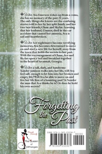 When Ava Emerson wakes up from a coma, she has no memory of the past 25 years. The only things she knows are the confusing stories told to her by her split family and her two best friends, Chase and Skylar. Learning that her husband, Connor, died in the car accident that caused her amnesia, Ava is sad and heartbroken. When her nightmares become terrifying memories, Ava becomes determined to move on and start a new life for herself, away from the town that holds the secrets to her past. With the encouragement of Chase, Ava and Skylar open a bed and breakfast together in the heart of Savannah, Georgia. When a tall, dark, and handsome Xander Jamison walks into her life, will Ava feel safe enough to let him into her broken and empty life? Will Ava be able to move on and live her life free of a haunting past? Is Xander the man whom Ava thinks he is? Or does he hold his own secrets?