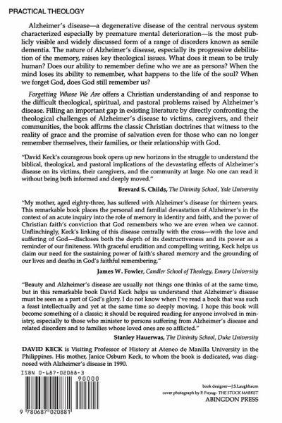 Alzheimer's disease - a degenerative disease of the central nervous system characterized especially by premature mental deterioration - is the most publicly visible and widely discussed form of a range of disorders known as senile dementia. The nature of Alzheimer's disease, especially its progressive debilitation of the memory, raises key theological issues. What does it mean to be truly human? Does our ability to remember define who we are as persons? When the mind loses its ability to remember, what happens to the life of the soul? When we forget God, does God still remember us? Forgetting Whose We Are offers a Christian understanding of and response to the difficult theological, spiritual, and pastoral problems raised by Alzheimer's disease. Filling an important gap in existing literature by directly confronting the theological challenges of Alzheimer's disease to victims, caregivers, and their communities, the book affirms the classic Christian doctrines that witness to the reality of grace and the promises of salvation even for those who can no longer remember themselves, their families, or their relationship with God.