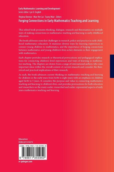 As such, the book advances current thinking on mathematics teaching and learning for children in the early years from birth to eight years with an emphasis on children aged birth to 5 years. It considers the purpose and value in connecting mathematics teaching and learning to children's lives, and provides provocations for both educators and researchers on the many under-researched and under-represented aspects of early years mathematics teaching and learning.