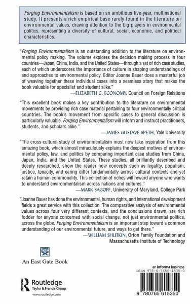 Acknowledgments; Editor's Note; INTRODUCTION Joanne Bauer; PART I. ENVIRONMENTAL VALUES IN FOUR COUNTRIES; 1. The Politics and Ethics of Going Green in China: Pollution Control in Benxi City and Wetland Preservation in the Sanjiang Nature Reserve Liu Yu Pan Wei Shen Mingming Song Guojun Vivian Bertrand; Introduction by Judith Shapiro; 2. From Kogai to Kankyo Mondai: Nature Development and Social Conflict in Japan Kada Yukiko Tanaka Shigeru Arakaki Tazusa Watanabe Shinichi Steven Hoffman; Introduction by Jeffrey Broadbent; 3. Rethinking Indian Environmentalism: Industrial Pollution in Delhi and Fisheries in Kerala India Amita Baviskar Subir Sinha Kavita Philip; Introduction by Paul Greenough; 4. Two Faces of American Environmentalism: The Quest for Justice in Southern Louisiana and Sustainability in the Sonoran Desert David Jenkins Joanne Bauer Scott Bruton Diane Austin and Thomas McGuire; Introduction by Keith Kloor; PART II. UNDERSTANDING VALUES CROSS-NATIONALLY; 5. The Value of Legality in Environmental Action Sheila Sen Jasanoff; 6. Environmental Transformations and the Values of Modernity Arun Agrawal; 7. Evaluating Environmental Justice Robert Melchior Figueroa; 8. Finding Shared Values: Reason and Trust in Environmental Governance Clark Miller; PART III. REFLECTIONS ON THE STUDY OF ENVIRONMENTAL VALUES; 9. How Shall We Study Values Comparatively? Joanne Bauer and Anna Ray Davies; List of Contributors; Index.