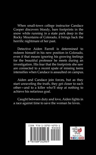 When small-town college instructor Candace Cooper discovers bloody, bare footprints in the snow while running in a state park deep in the Rocky Mountains of Colorado, it brings back the horrific nightmare of her past. Detective Aiden Farrell is determined to redeem himself in his new position in Colorado, even if that means ignoring his growing feelings for the beautiful professor he meets during an investigation. His fear that the footprints she saw are connected to a recent spate of missing teens intensifies when Candace is assaulted on campus. Aiden and Candace join forces, but as they start unraveling the truth, they get closer to each other-and to a killer who'll stop at nothing to achieve his nefarious goal. Caught between duty and love, Aiden fights in a race against time to save the woman he loves.