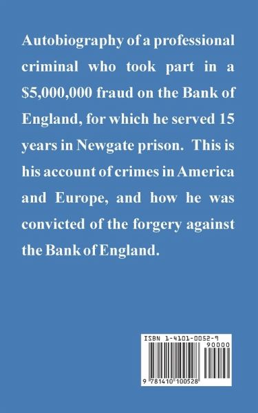 Autobiography of a professional criminal who took part in a $5,000,000 fraud on the Bank of England, for which he served 15 years in Newgate prison. This is his account of crimes in America and Europe, and how he was convicted of the forgery against the Bank of England.